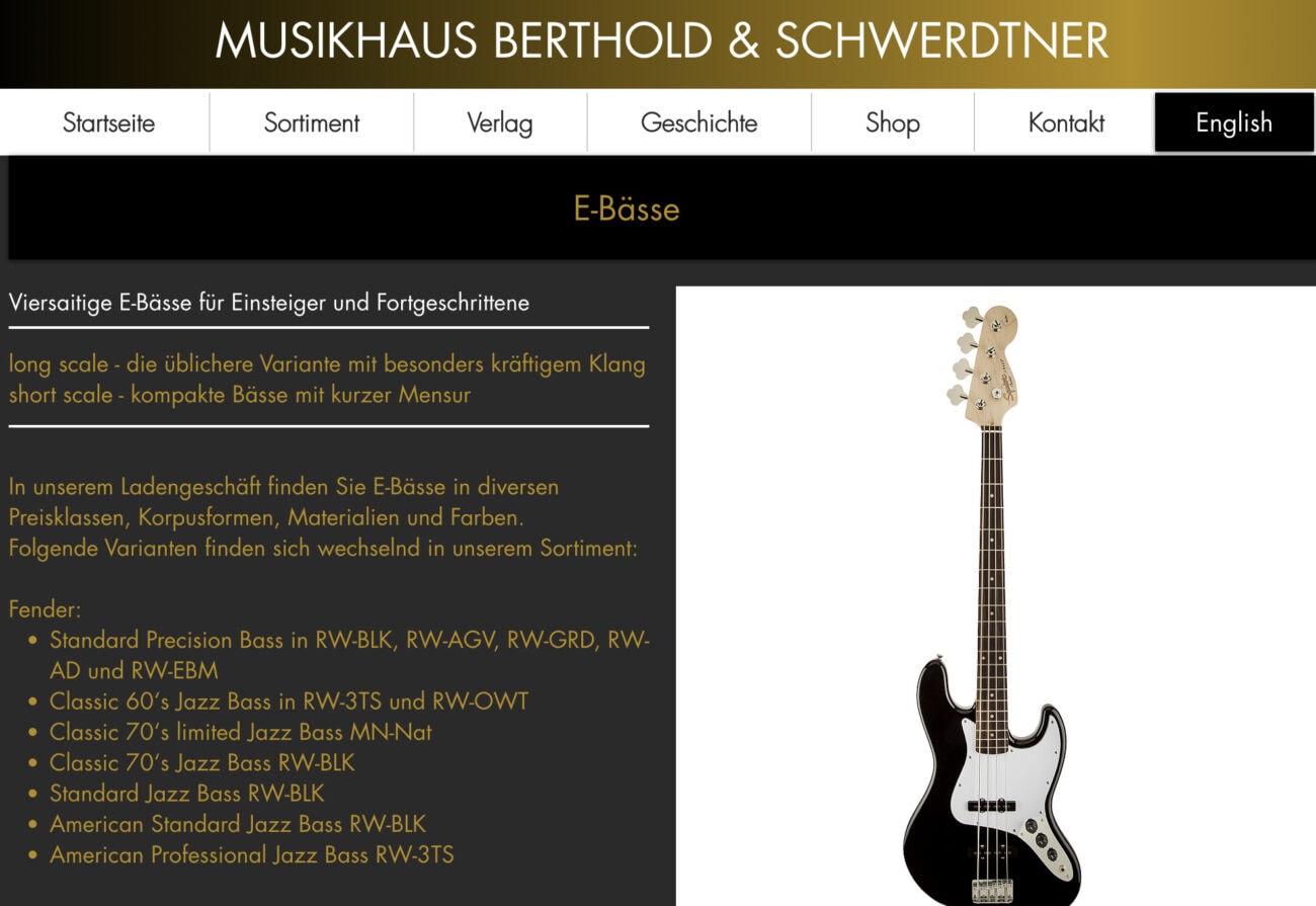 Klangvoll geht es tatsächlich im gleichnamigen E-Bassgeschäft in Stuttgart zu. Du kannst zahlreiche Instrumente vor Ort ausprobieren und selbstverständlich käuflich erwerben. Sogar Akustikbässe sind in dem sympathischen Bassladen vorhanden. Mit einem breit gefächerten Sortiment begeistert auch das „Sound Of Music“ in der Badener Landeshauptstadt. Das „Soundland Stuttgart“ hat einen beeindruckenden Showroom und einen sehr benützerfreundlichen Onlineshop. Bei „Road2music“ kannst du dir dein Instrument mit praktischen Zubehör aufpeppen und das „Einklang“ ist für jeden Jazz-Bassisten die richtige Anlaufstelle. Für den nächsten Geburtstag eines befreundeten Bassisten kannst du auch viele Geschenke in den Fachgeschäften erwerben.