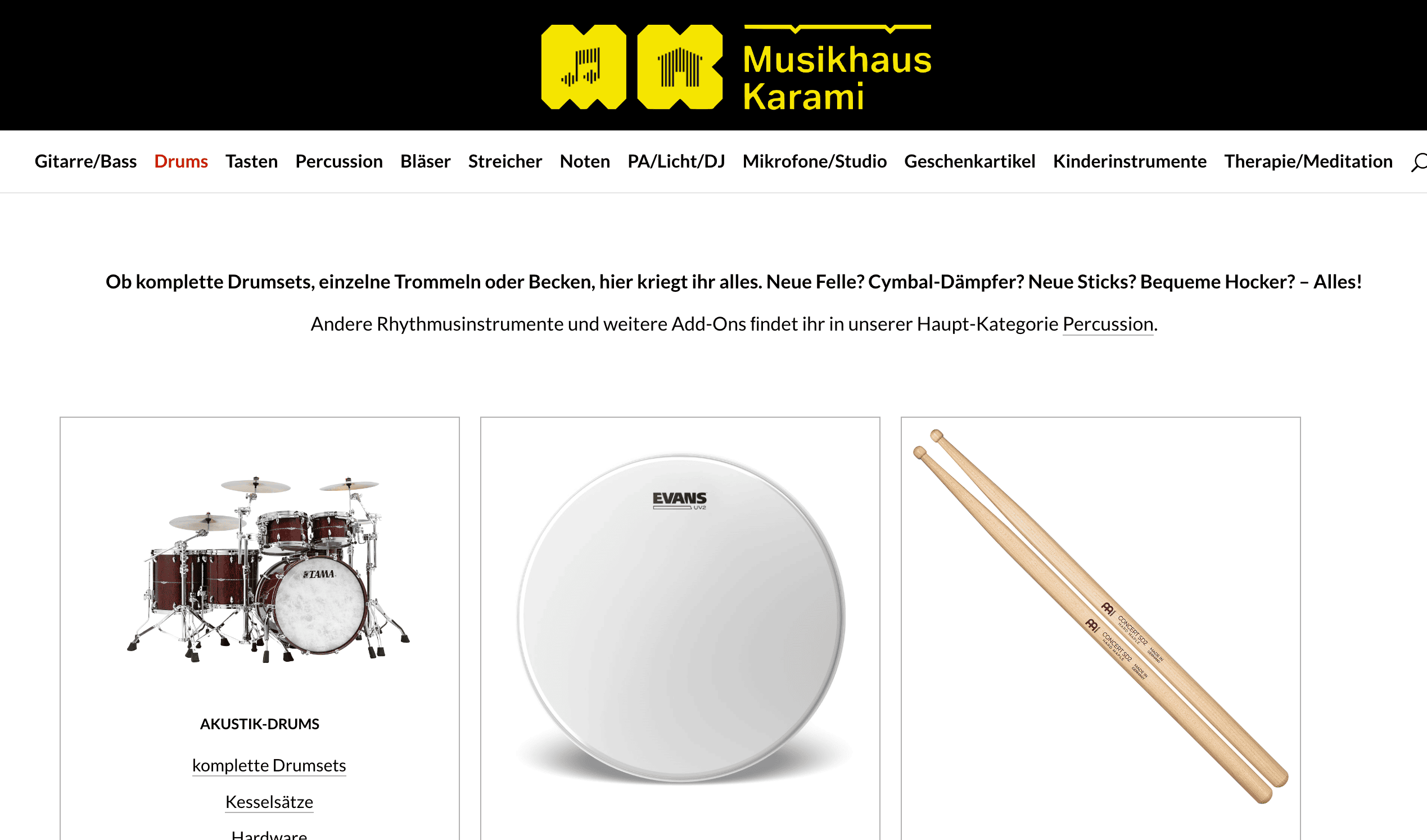 Der Store “Gitronic Musikinstrumente” bietet akustische sowie E-Drums an. Außerdem kannst du hier sämtliches Zubehör, wie Sticks, Felle oder Hocker kaufen. Der Hamburger “Musik Markt” befindet sich an der Reeperbahn und somit sehr gut gelegen. Dort kommen Multiinstrumentalisten voll auf ihre Kosten. Ein weiterer Ort, an dem das Drummer-Herz etwas höher schlägt, ist das „Musikhaus Karami“. Du kannst dir die Ware ebenfalls bequem im Onlineshop bestellen und deine Bestellung wird prompt geliefert.