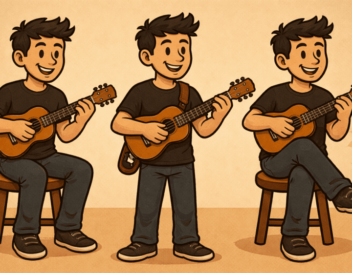 Obwohl die Ukulele schnell erlernt werden kann, sollte auf die Haltung der Ukulele im stehen und im sitzen geachtet werden.