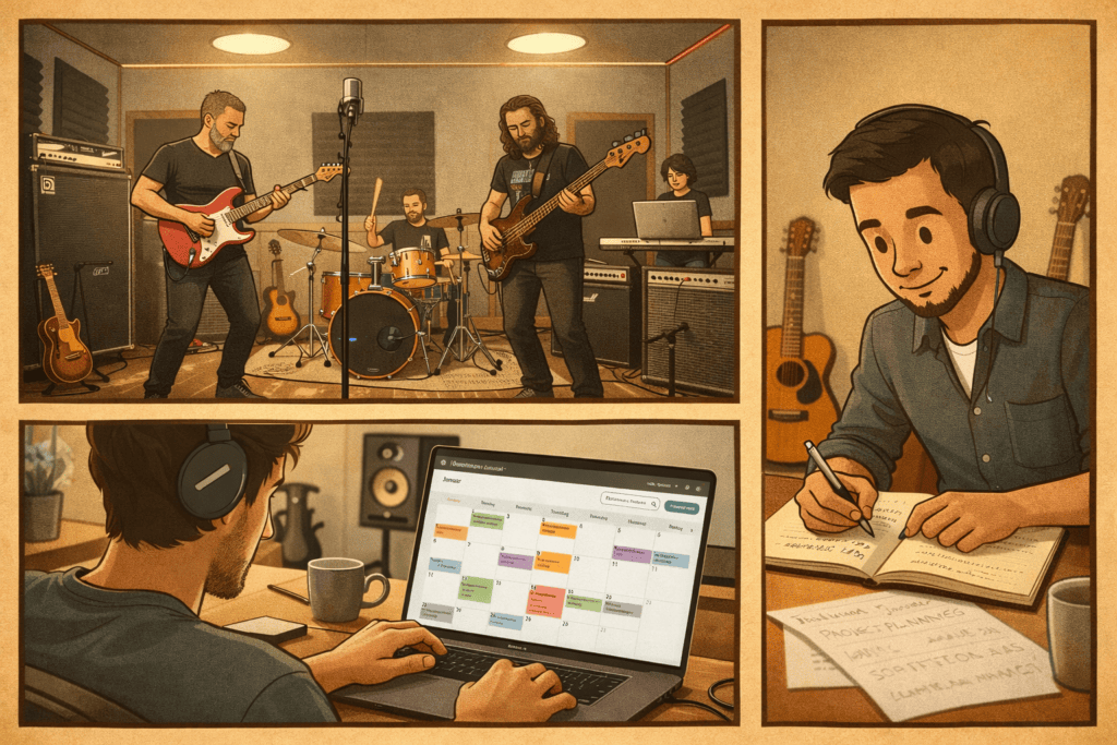 Dieser Artikel ist speziell für DIY-Artists und semiprofessionelle Bands im deutschsprachigen Raum geschrieben. Du findest hier konkrete Schritte für bessere Probenplanung, Repertoire-Verwaltung und Bandorganisation.