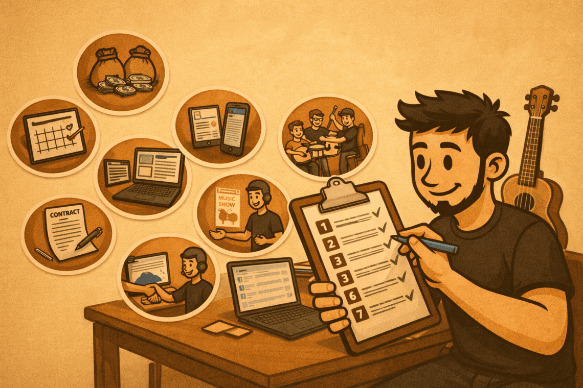 Langfristige Planung bedeutet auch: Puffer lassen. So könnt ihr spontan neue Chancen wahrnehmen – einen kurzfristigen Festival-Slot, eine Anfrage für ein Support-Konzert oder eine unerwartete Promo-Möglichkeit.