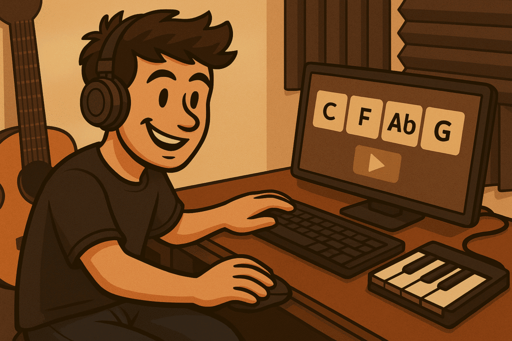 - Mit einer einfachen Akkordfolge in C-Dur zu beginnen, z.B. C-G-Am-F.